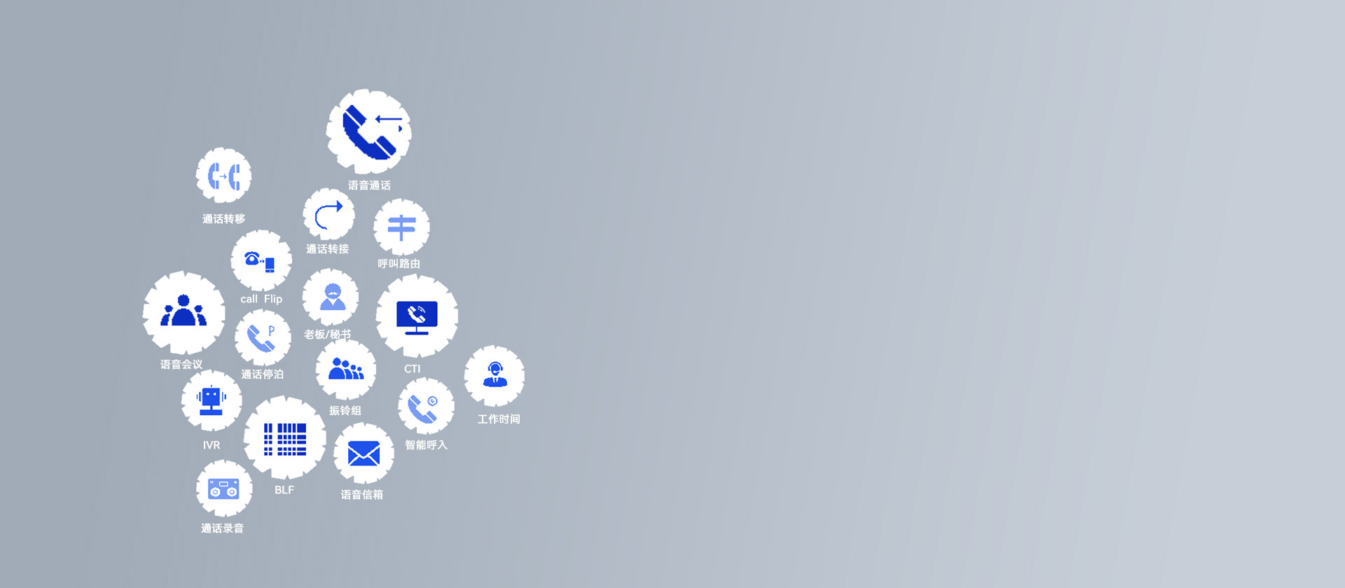 提供多端共振、语音会议室、老板/秘书、呼叫队列等多种功能,覆盖移动办公、工厂、商务、客服等多种业务场景下的通话需求